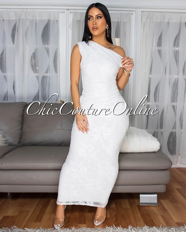 Blaire Off-White Lace Off-The-Shoulder Maxi Dress