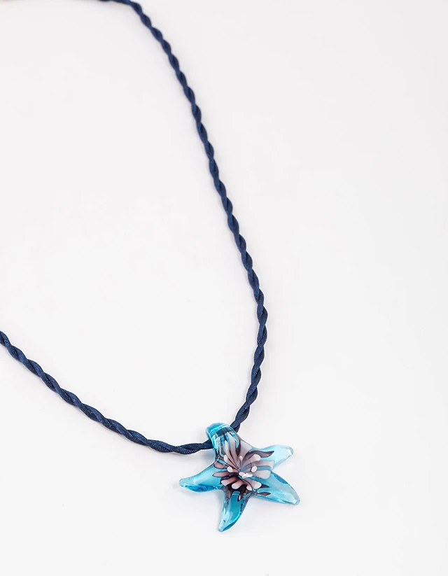 Blue Glass Flower Necklace