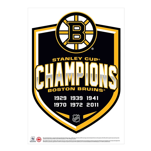 Boston Bruins 6-Time Stanley Cup Champions - 16'' x 22'' Repositionable Shield Decal