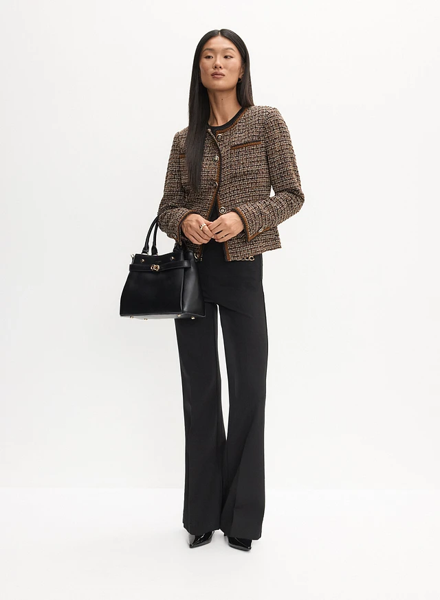 Bouclé Cardigan & Chain Trim Bootcut Pants