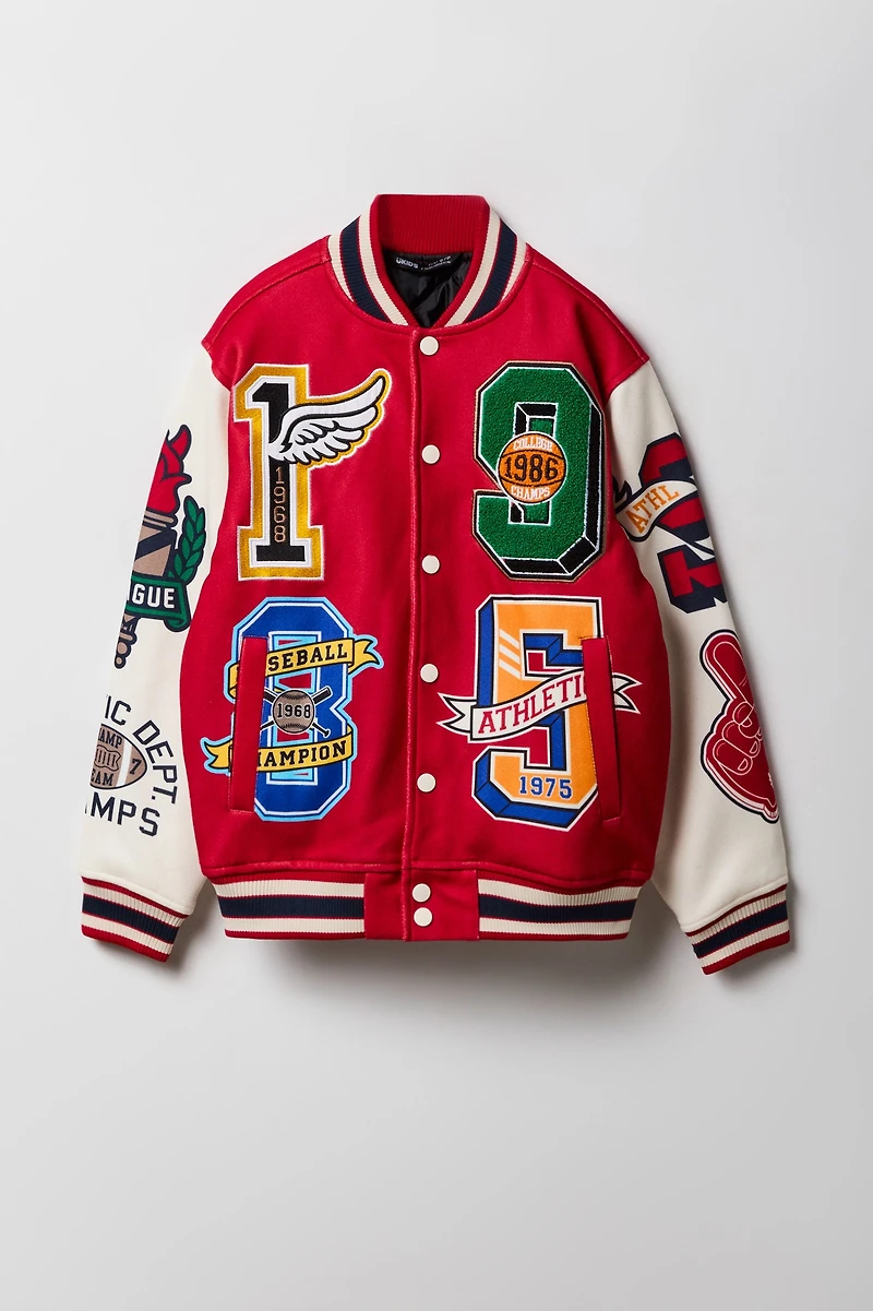 Boys Chenille Embroidered Fleece Varsity Jacket