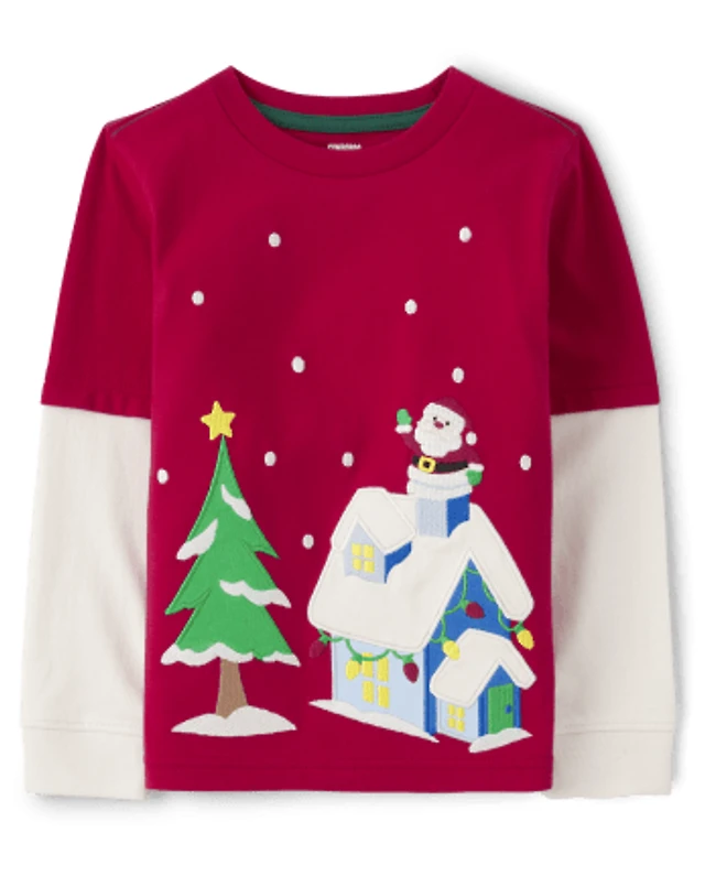 Boys Embroidered Christmas Scene Layered Top - Very Merry