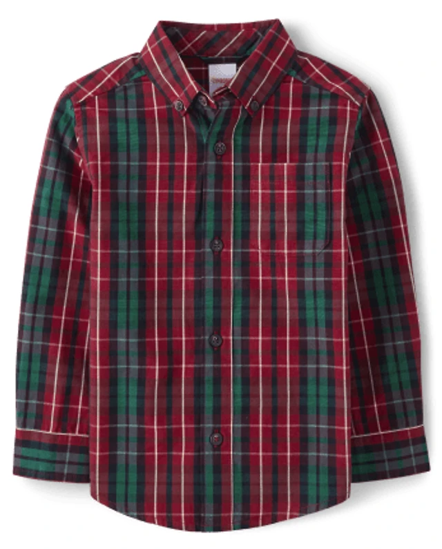 Boys Matching Family Plaid Poplin Button Up Shirt - A Royal Christmas
