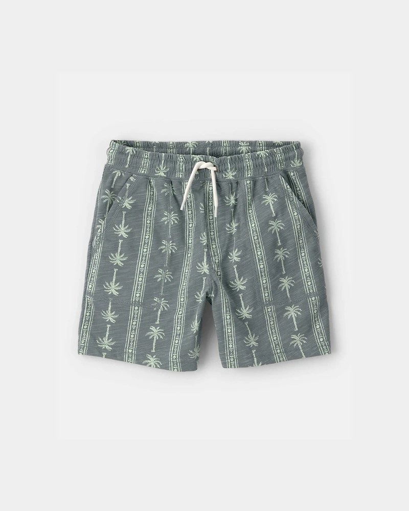Get ready for sunny adventures with these stylish boys' fashion shorts. Made from soft jersey fabric, they offer all-day comfort and breathability. The playful palm tree print adds a fun touch, making them perfect for beach days or backyard playdates. With an easy pull-on design, dressing is a breeze—because we all know how busy mornings can get. These shorts are a must-have for every young explorer this season.