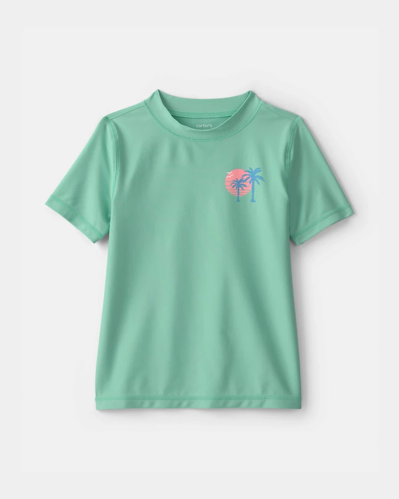 Dive into summer adventures with this vibrant swim top, designed for active days under the sun. The relaxed fit ensures ultimate comfort, allowing kids to move freely whether they're splashing in the pool or building sandcastles. Featuring a tropical palm tree graphic, it brings a fun, trendy vibe that kids love while parents appreciate the easy-care fabric that stands up to wear and tear. Perfect for warm weather fun, this swim essential is also gift boxable, making it a thoughtful choice for birthdays or summer celebrations.