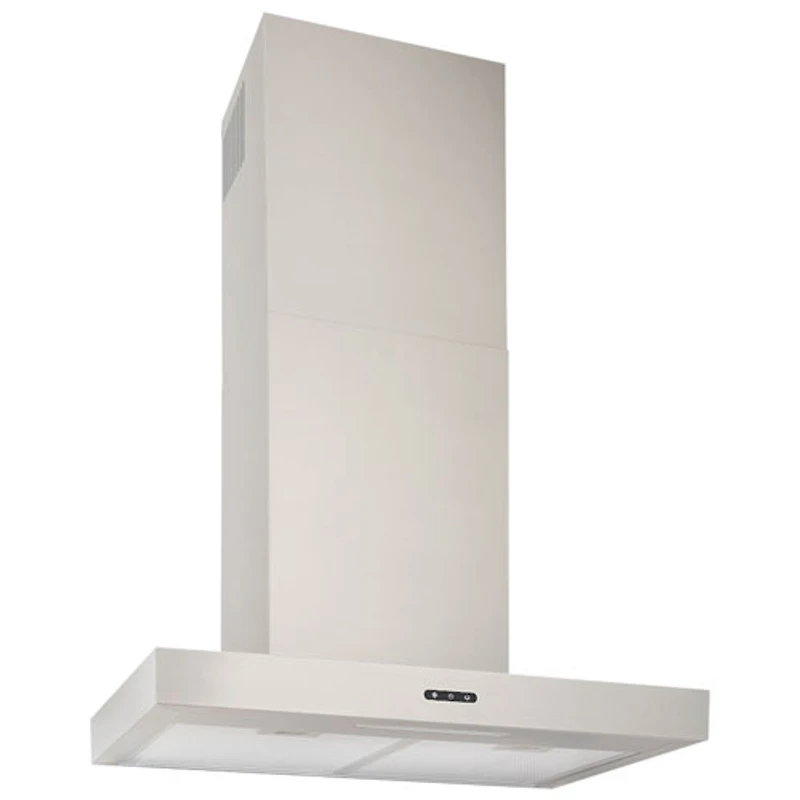 HVI-certified 460 CFM blower capacity effectively clears smoke, steam, grease, and cooking odours from the kitchen 3-speed capacitive touch controls makes using this range hood extremely simple Quiet operation at just 1.5 sones on low speed, so you can easily have a conversation while you’re cooking 2-level LED module makes the cooking experience better by providing brilliant illumination over your range Aluminium filter captures grease and is easy to clean Can be installed non-ducted with a non-ducted kit (sold separately) Optional flue extensions (sold separately) for 9’ to 10' ceilings Dimensions: Width: 76.05cm (29.94"); Height: 69.06cm (27.19"); Depth: 50.01cm (19.69")