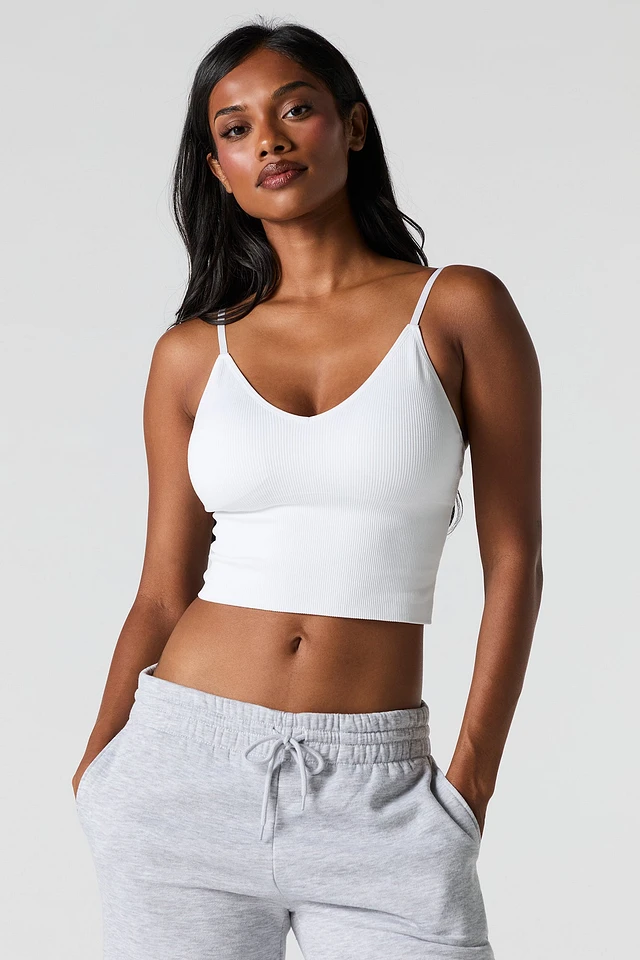 Camisole côtelé sans couture à encolure en V avec bonnets intégrés
