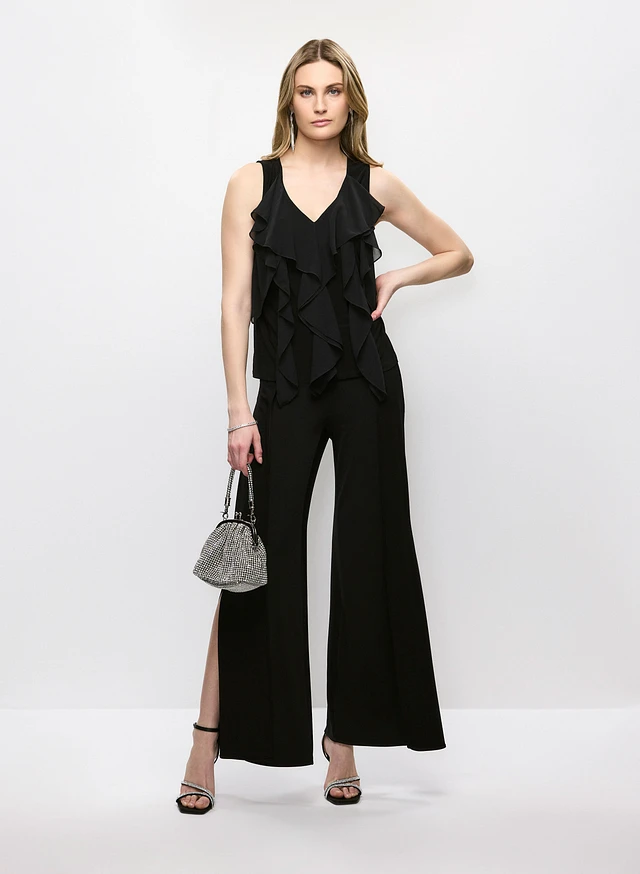 Cascading Ruffle Top & Slit Flare Leg Pants