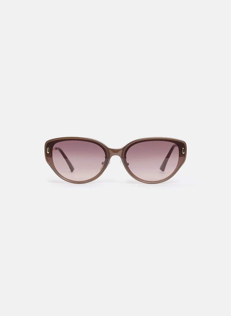 Make a bold statement with our cat eye sunglasses featuring a sleek plastic frame paired with metal arms and flat lenses in a chic brown and rose gold finish. Pair them with a minimalist outfit and gold-tone jewelry to elevate your summer accessory game. Plastic framesCat eye shapeMetal temples