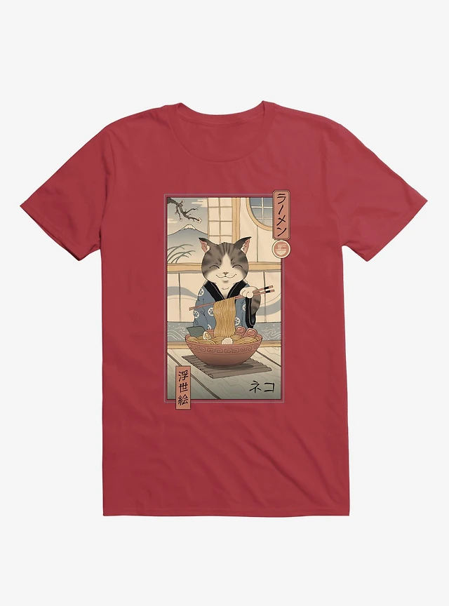 Cat Neko Ramen Ukiyo-E Red T-Shirt