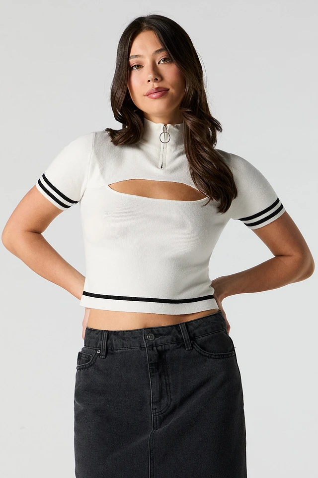 Chandail à manches courtes avec rayures contrastantes et col cheminée