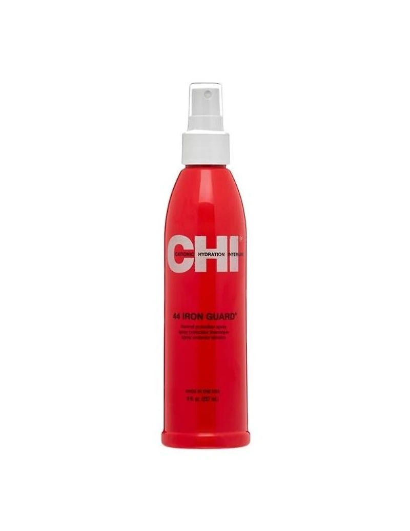 CHI 44 Iron Guard Thermal Protection Spray - 237ml CHI 44 Iron Guard Thermal Protection Spray is a weightless, superior heat protection spray that works from the inside out, helping to protect hair from thermal damage and breakage. With no added build-up, the CHI 44 Iron Guard helps to seal the cuticle and works to prevent future damage. This spray helps to protect your hair from the heat of the iron, while adding shine at the same time. It’s great for any hair type, but especially ideal for dry, curly, or thick hair because it will help reduce frizziness and flyaways.