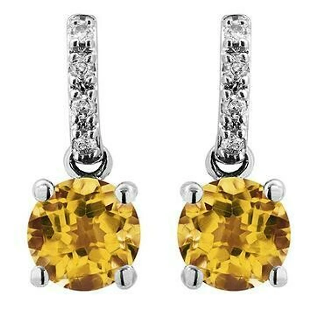 Citrine Earrings with Diamond Accent 14KT Gold