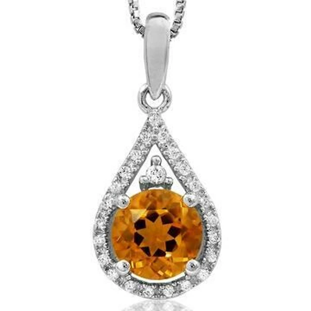 Citrine Teardrop Pendant with Diamond Frame 14KT Gold