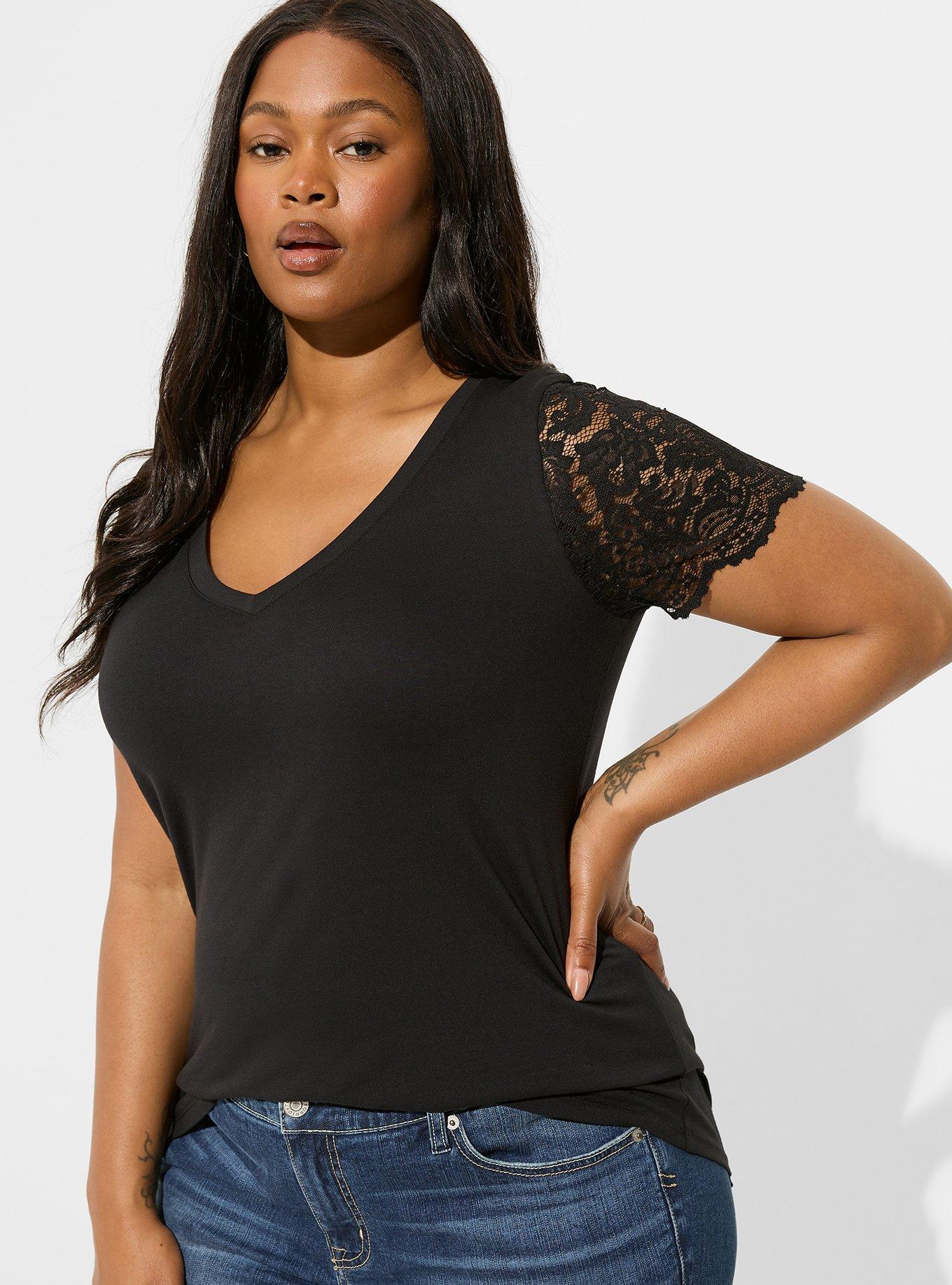 Classic Fit Cotton-Blend V-Neck Lace Sleeve Tee