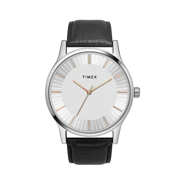 Classic Silvertone & Black Leather Strap Watch TW2V82300GP