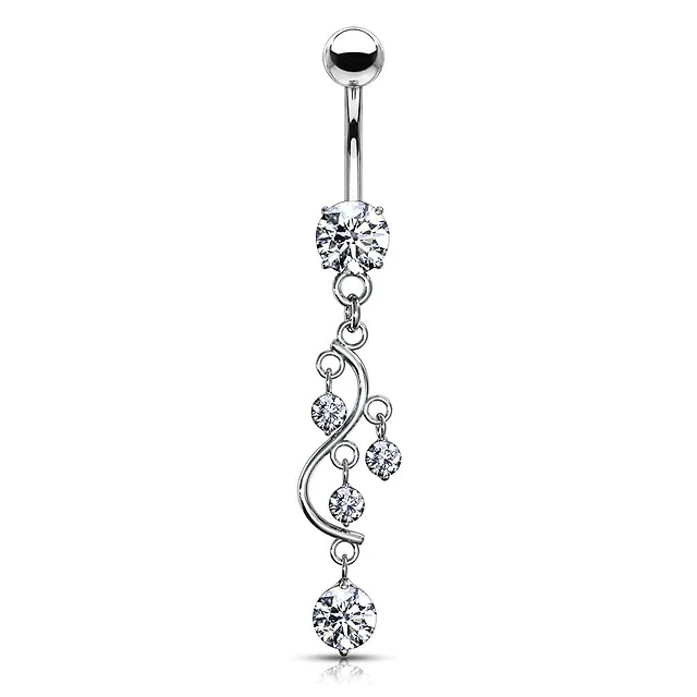 Classic Traditional Vine Prong Dangling Surgical Steel Belly Button Navel Ring