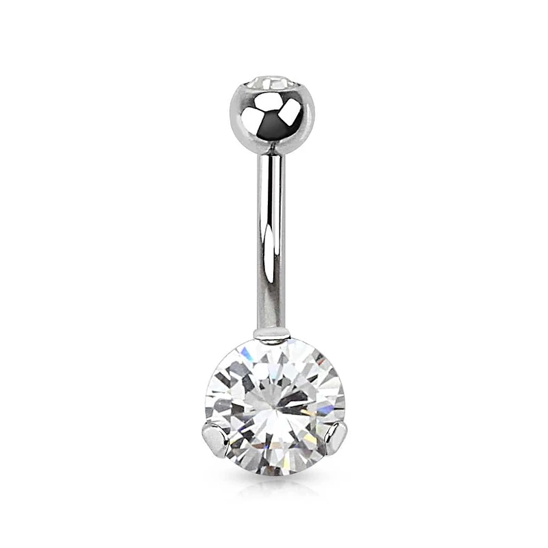 Classic White CZ 8mm Gem Surgical Steel Belly Button Navel Ring