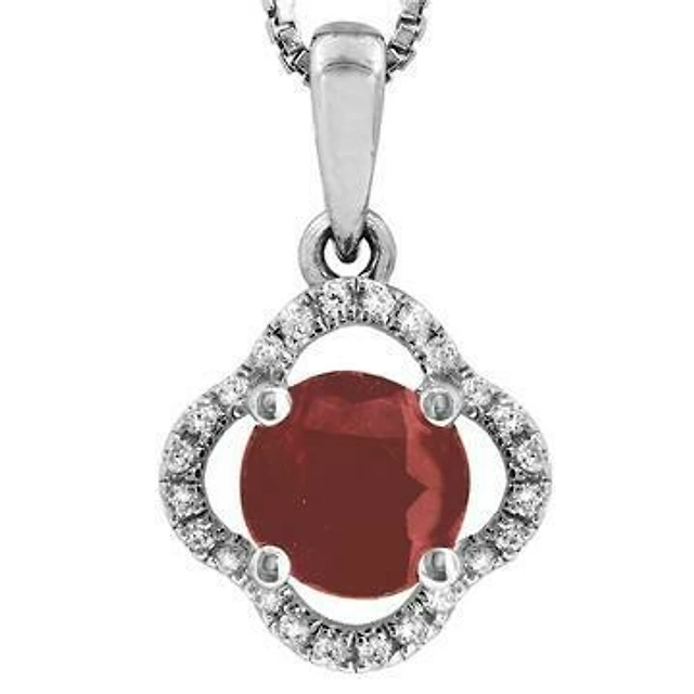Clover Ruby Pendant with Diamond Frame 14KT Gold