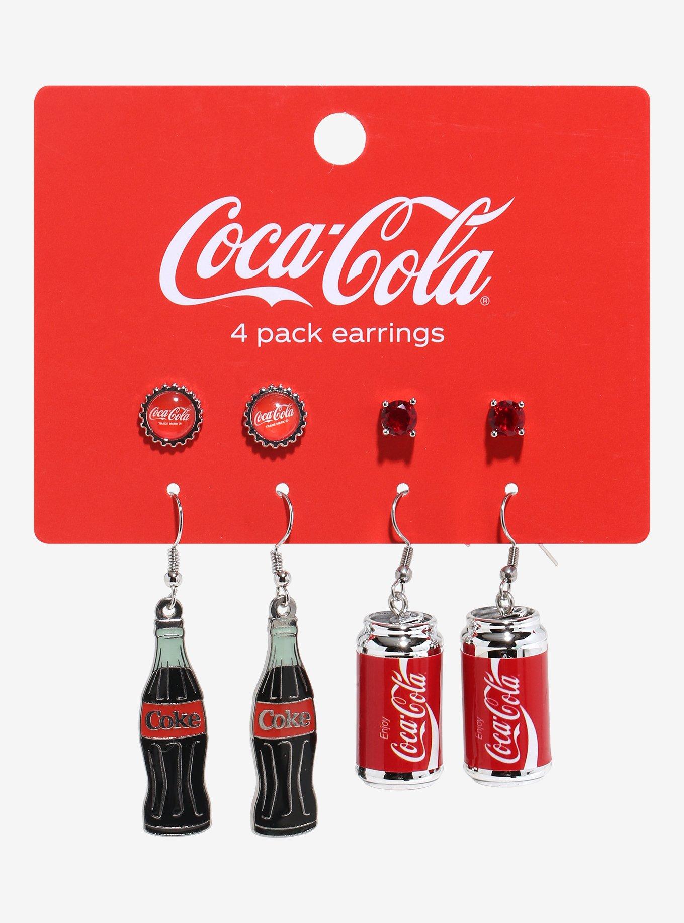Quench your thirst with these refreshing earrings! Comes with red gem and Coca-Cola bottle cap studs. Plus, Coca-Cola can and bottle drops. You can just taste the classic fizzy flavor!