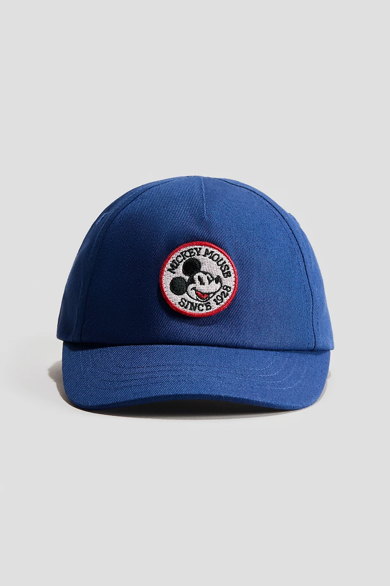 Cap in cotton twill. Motif at front, a sweatband, and elastic at back.
