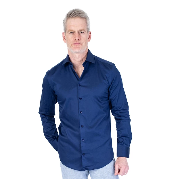 Cotton Satin Finish Solid Dress Shirt - Navy