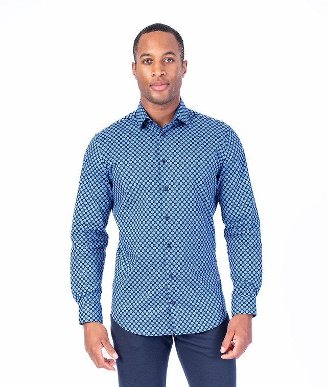 Cotton/Stretch Circle Print Sport Shirt - Navy / Blue