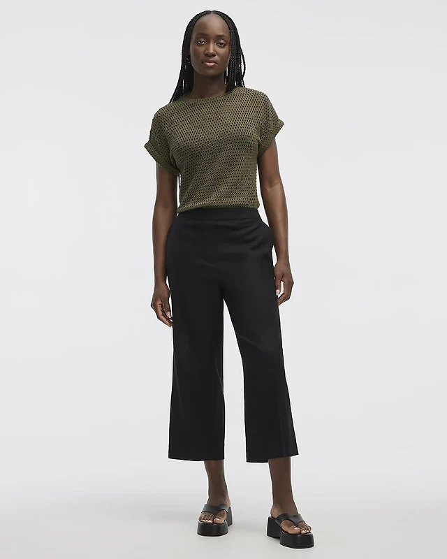 Girls Linen-Blend Cropped Wide Leg Pants - Italian Riviera