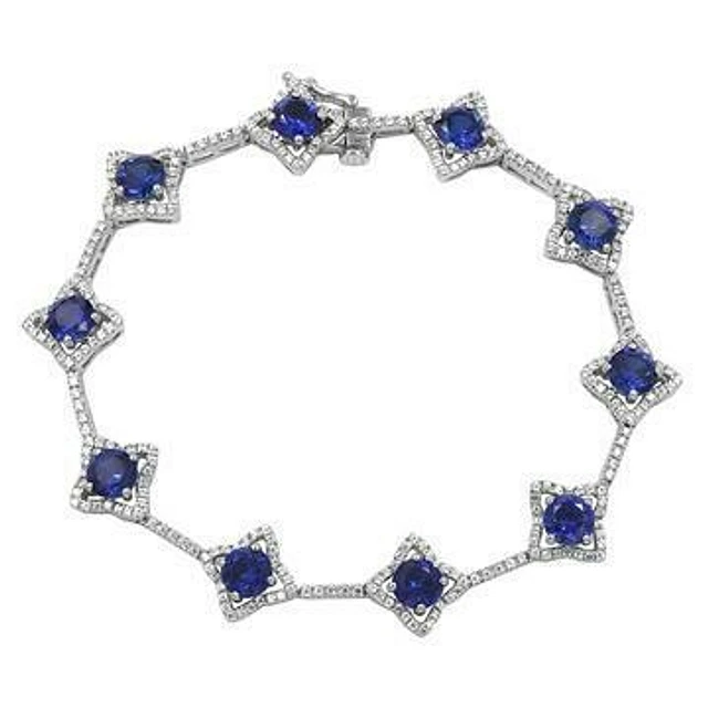 Cross Blue Sapphire Bracelet with Diamond Accent White Gold