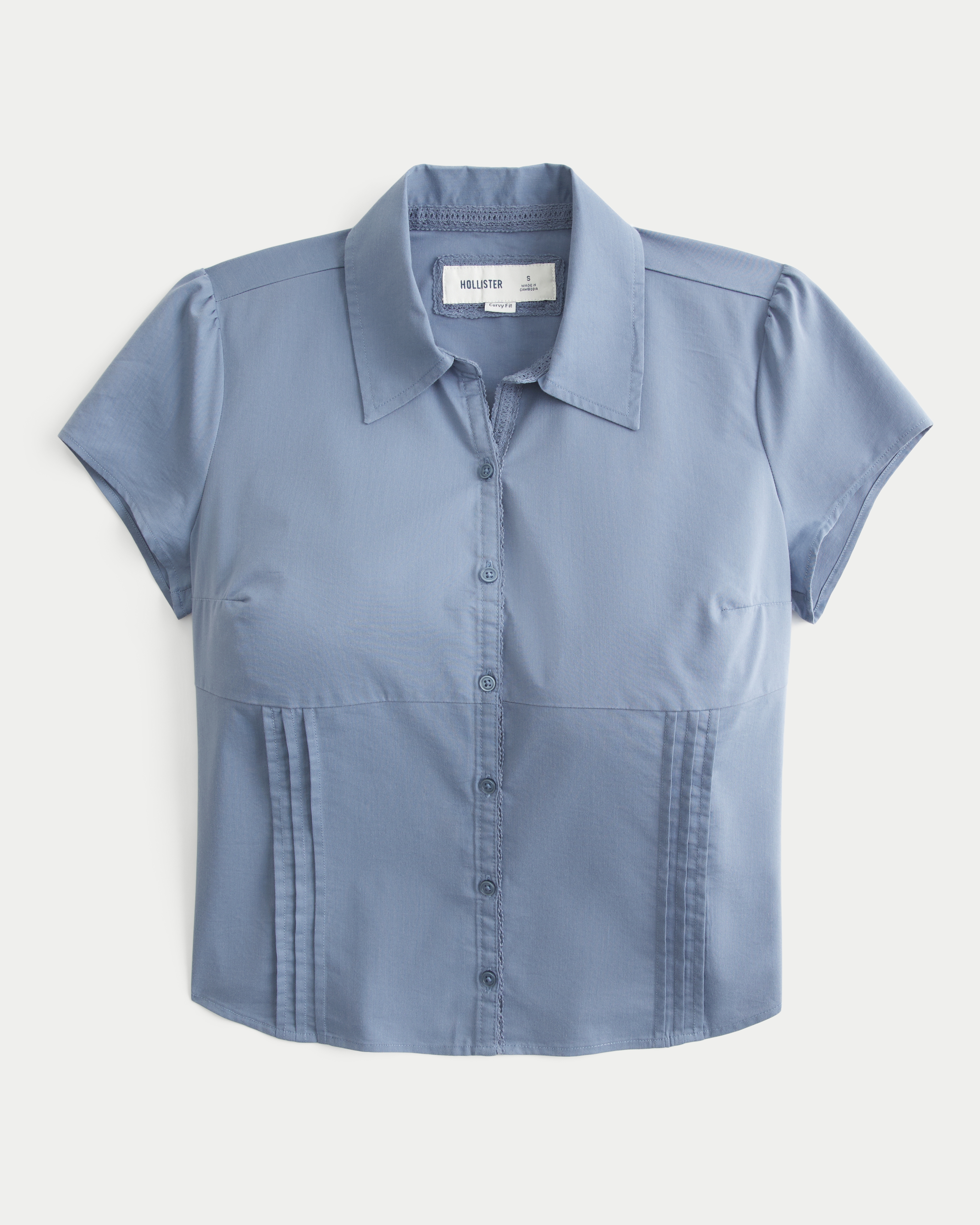 Curvy Short-Sleeve Pleated Shirt
