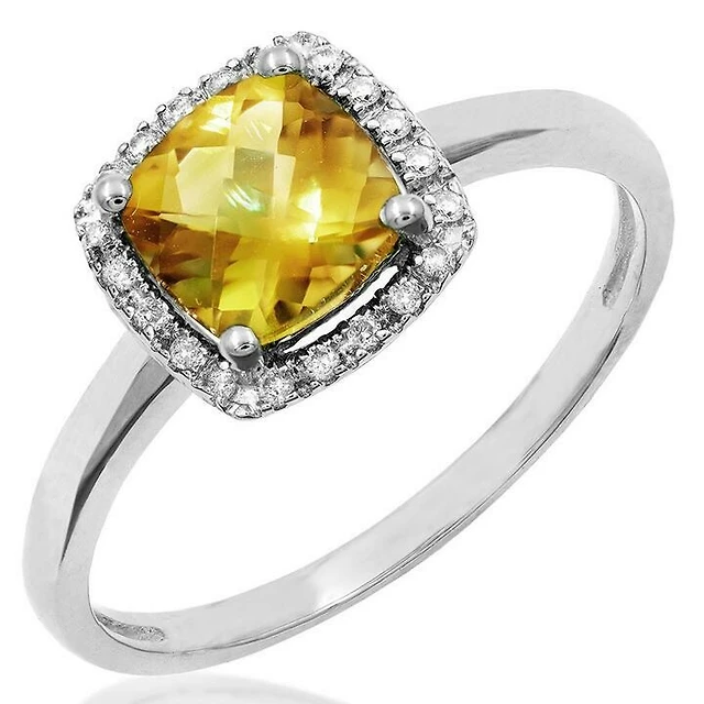 Cushion Citrine Ring with Diamond Halo 14KT Gold