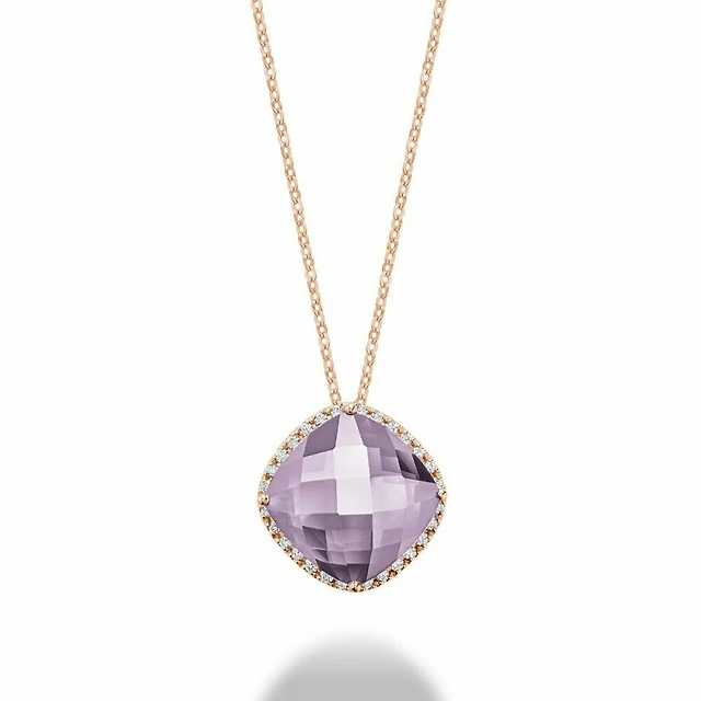 Cushion Cut Pink Amethyst & Diamond Halo Pendant 0.20CTDI Rose Gold