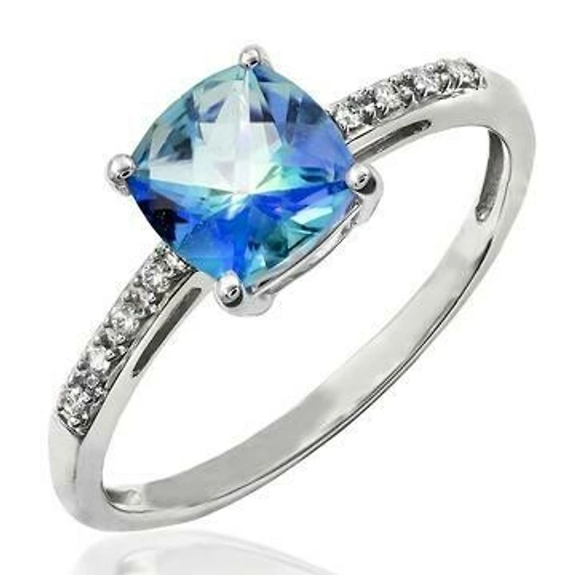 Cushion Topaz Ring with Diamond Accent 14KT Gold