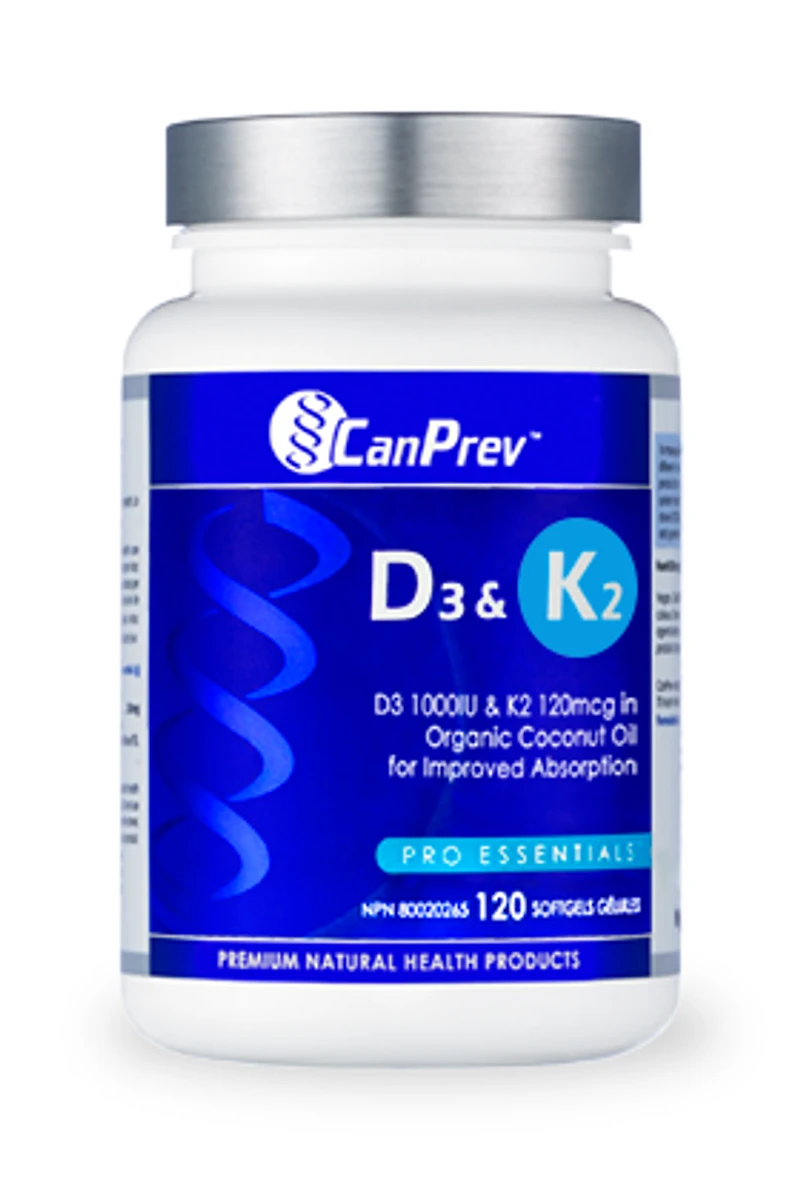Tropical vacations are something we might manage once a year, but what about the other 50 weeks? Vitamin D3 (cholecalciferol), is known as the “sunshine vitamin” because it is easily synthesized by the body when the sun’s UVB rays strike the skin. Vitamin D helps with the absorption of calcium and phosphorus to keep bones and teeth strong and protect against disease. Vitamin K2 is a fat soluble vitamin essential for normal blood clotting and bone metabolism. There are three different forms of vitamin K: K1 (phytoquinone), K2 (menaquinone), which can be made by natural bacteria in the intestines, and K3 (menadione), a synthetic version of vitamin K. Clinical research has demonstrated significant protection of bone strength with the K2 form of vitamin K. Menaquinone-7 (MK-7) is an effective activator of osteocalcin, the protein essential for calcium deposition in bone. It works synergistically with vitamin D3 to help influence mineral strength in bones and teeth. CanPrev’s D3 & K2 has been reformulated with K2Vital, a unique form of MK-7 that is soy-free, plant sourced, and 100% trans form, yielding a pure, bio-active form of vitamin K2 MK-7. The D3 & K2 softgels are suspended in a medium chain triglyceride base made from organic coconut oil. Coconut oil is a stable fatty acid that enhances the absorption of fat-soluble nutrients, such as vitamins D and K. Get the benefits of a sunshine vacation every day of the year with CanPrev’s D3 & K2 softgels. Ingredients Each softgel contains Non-Medicinal Ingredients Organic virgin coconut oil (yielding 65-75% medium chain triglycerides), bovine gelatin, glycerin, purified water. Recommended Use D3 & K2 assists the body in the absorption and utilization of calcium and supports the development and maintenance of bones and teeth. Directions Adults - Take one softgel per day with food as directed by a healthcare practitioner. Cautions & Warnings As with any natural health product, you should consult a healthcare practitioner prior to use of this product, especially if you are taking any medication including blood thinners or if you have a medical condition. Do not use if seal is broken. Keep out of reach of children.