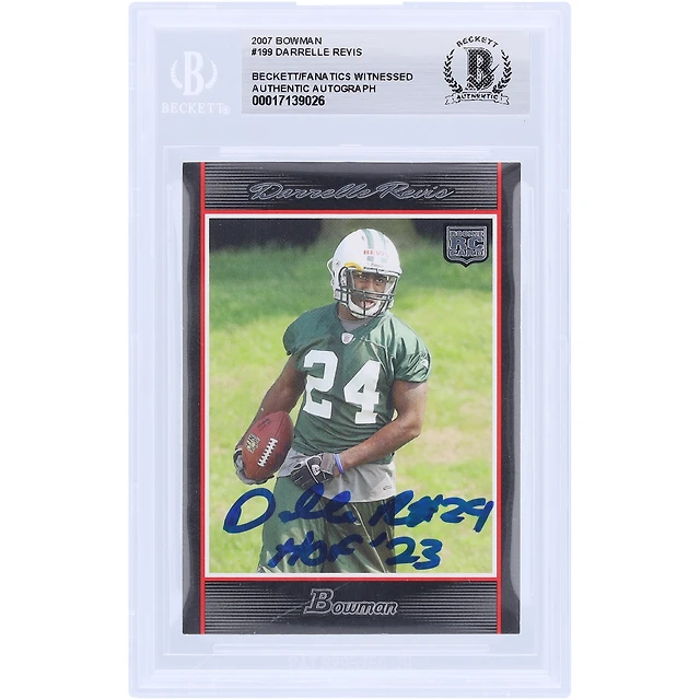 Darrelle Revis New York Jets Autographed 2007 Bowman #199 Beckett Fanatics Witnessed Authenticated Rookie Card with "HOF '23" Inscription