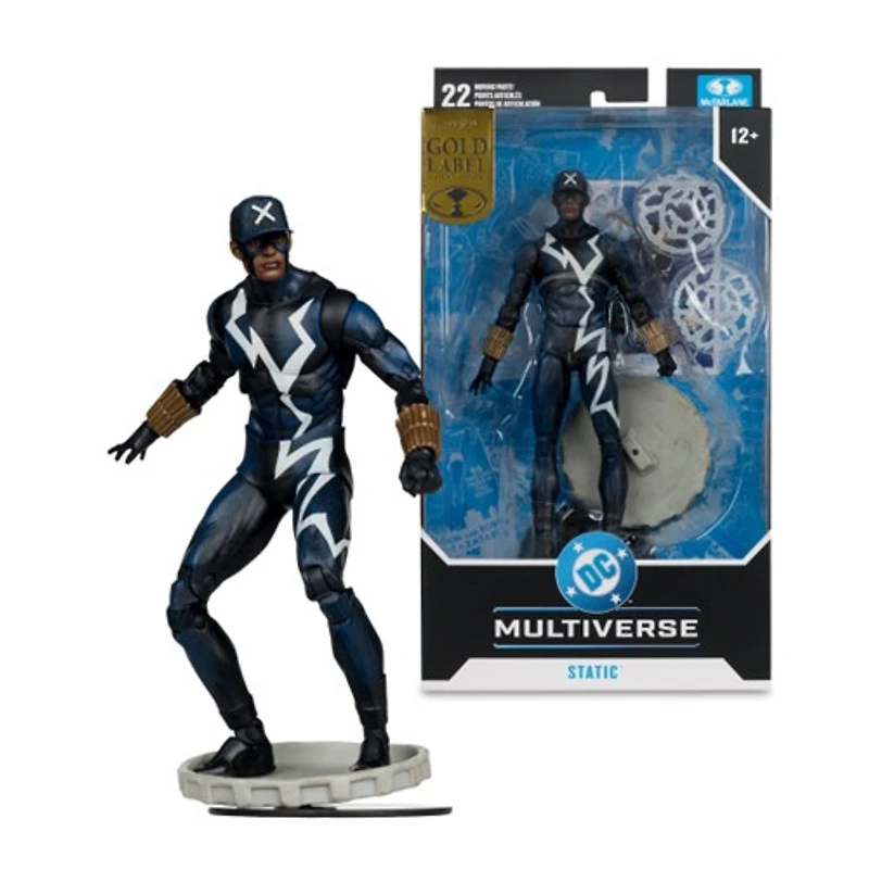 Like any awkward teenager, Virgil Hawkins worries about girls, pocket money, girls and getting beat up. But recently, he's had even more on his mind: his newfound superpowers, his secret identity...and girls. On a night of terror dubbed "The Big Bang" Virgil Hawkins received incredible electromagnetic powers. As an enthusiastic comic book reader, he knew just what he had to do so his swashbuckling alter ego, Static was born, A wisecracking crusader in city infested with superhuman crime, Static is about to learn the hard way, that as much fun as it is playing the hero, it's no game. Incredibly detailed 7” scale figure based off the DC Multiverse, Designed with Ultra Articulation with up to 22 moving parts for full range of posing and play, Accessories include 2 electric rings, trash can lid and base, Included collectible art card with figure photography on the front, and character biography on the back, Collect all McFarlane Toys DC Multiverse Figures