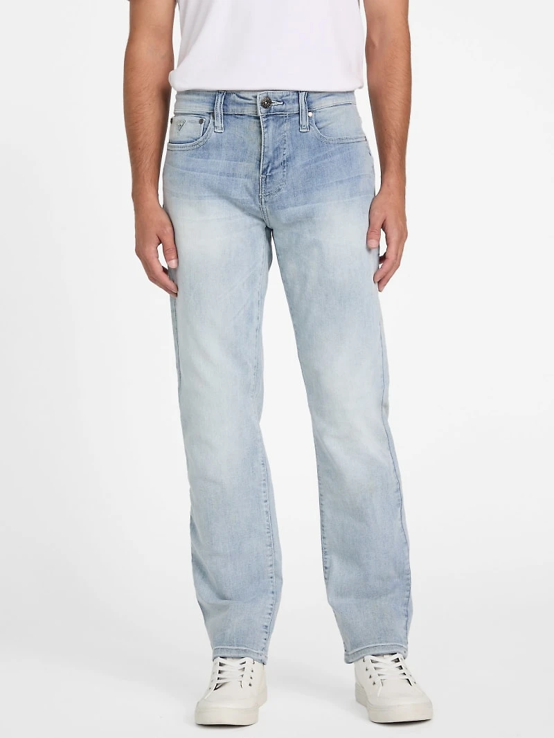 A stylish upgrade for your denim collection, these straight-leg jeans feature a slim fit for a modern look. Hand-sanding and whiskered detailing add a lived-in look.