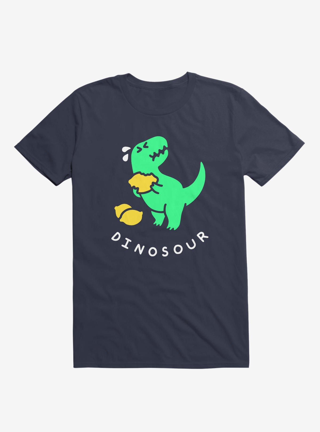 The extinction of dinosaurs was caused by lemons - and this T-shirt is proof. Our lightweight navy blue graphic tee features T-Rex sucking on a lemon. (He's what paleontologists call dinoSOUR.) Officially licensed art from Obinsun.