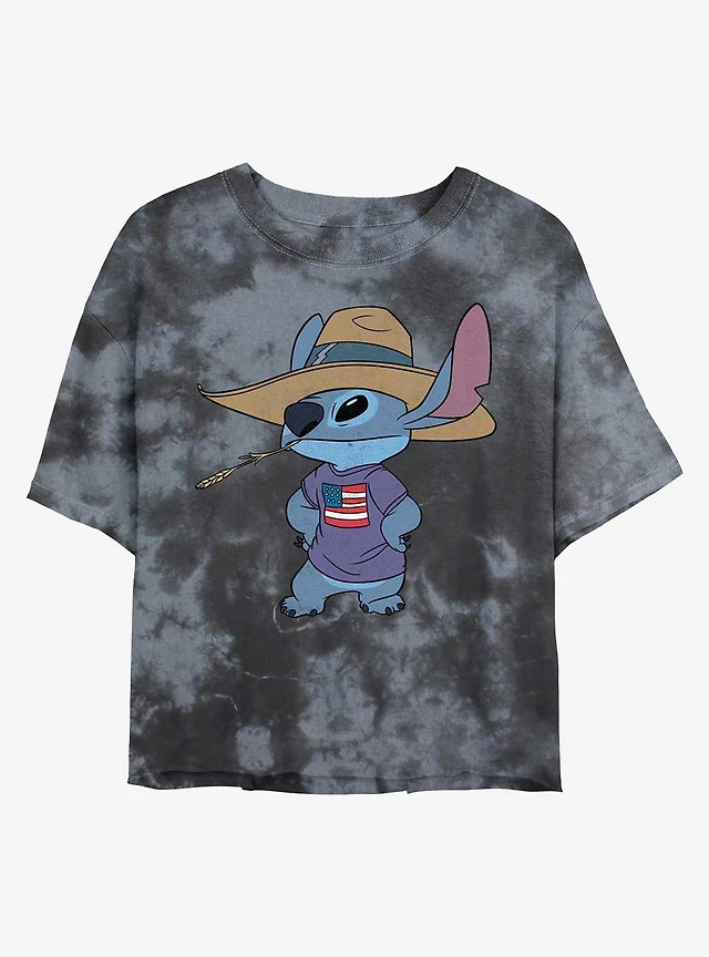 Disney Lilo & Stitch Cowboy Tie-Dye Girls Crop T-Shirt