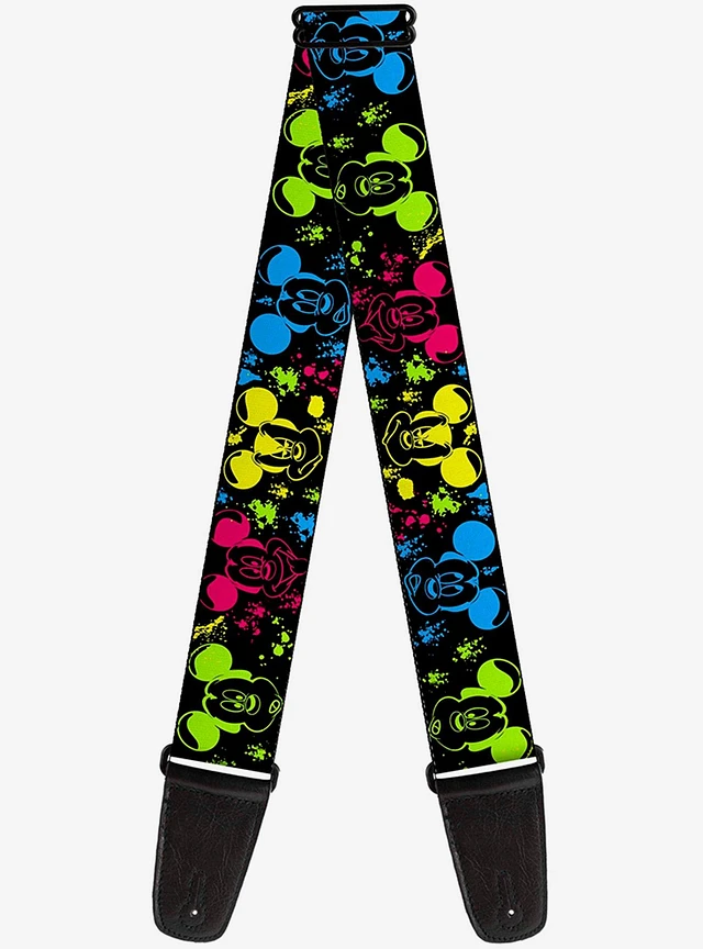 Disney Mickey Mouse Expressions Paint Splatter Neon Guitar Strap