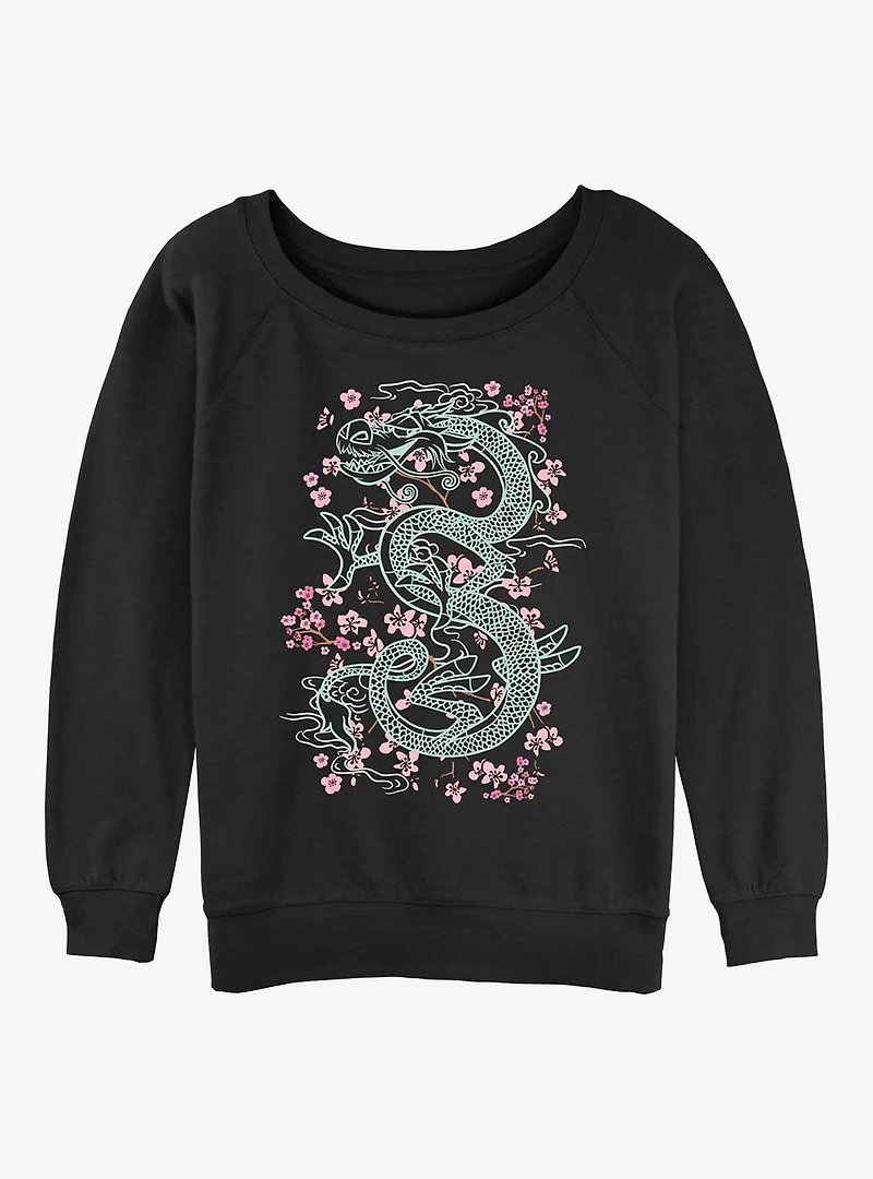 Disney Mulan Mushu Floral Girls Slouchy Sweatshirt