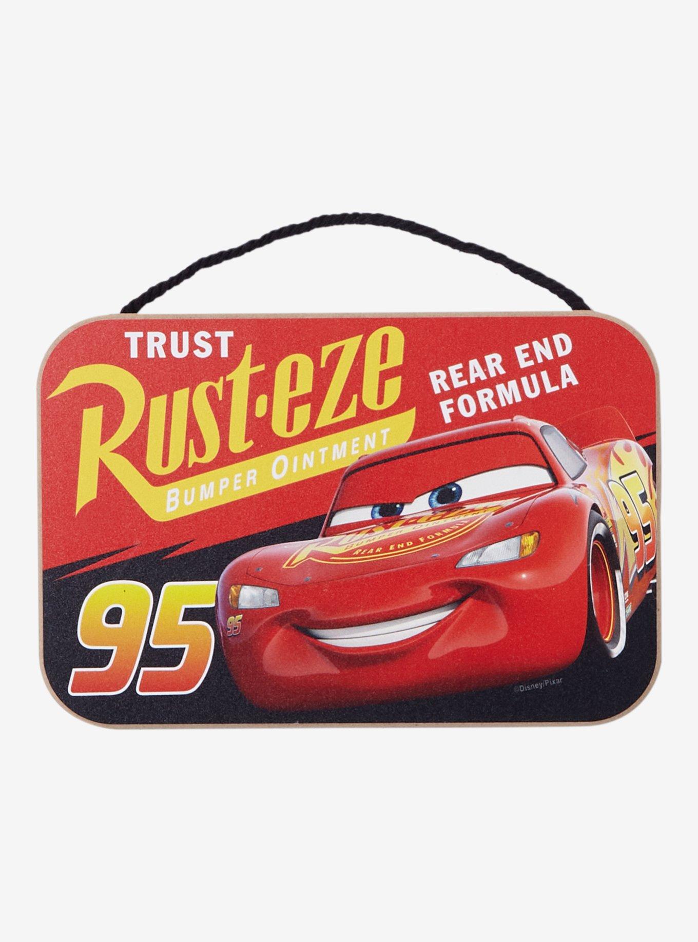 Nothing soothes a rusty bumper like Rust-eze! Rep your favorite racer with this Cars art on your walls. Start a shrine Lightning McQueen would love. Comes ready to hang. Kachow!