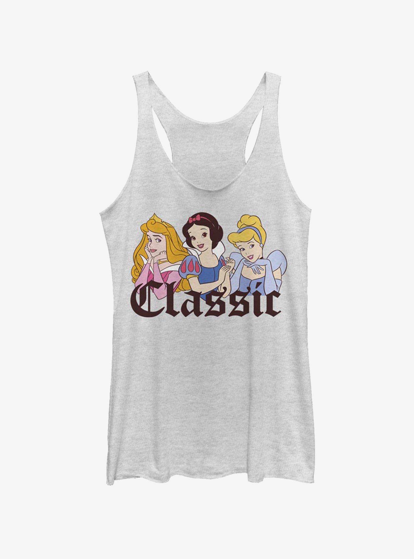 Classics never go out of style. This racerback tank captures early Disney Princesses Aurora, Snow White, and Cinderella.