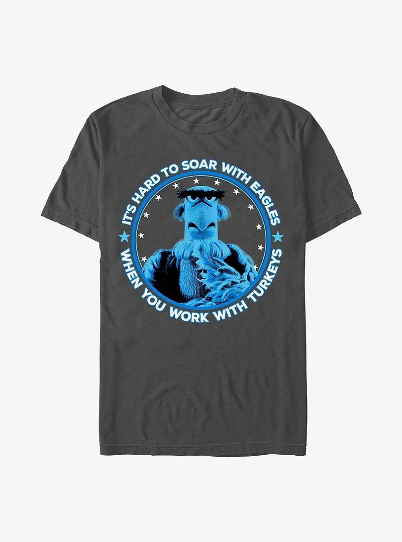 Fact: It's hard to soar with eagles when you work with turkeys. Sam Eagle knows what's up! This lightweight Muppets tee tells it like it is.