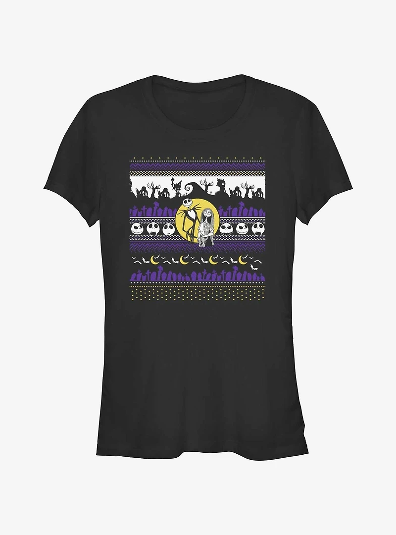 Disney The Nightmare Before Christmas Jack And Sally Ugly Holiday Girls T-Shirt