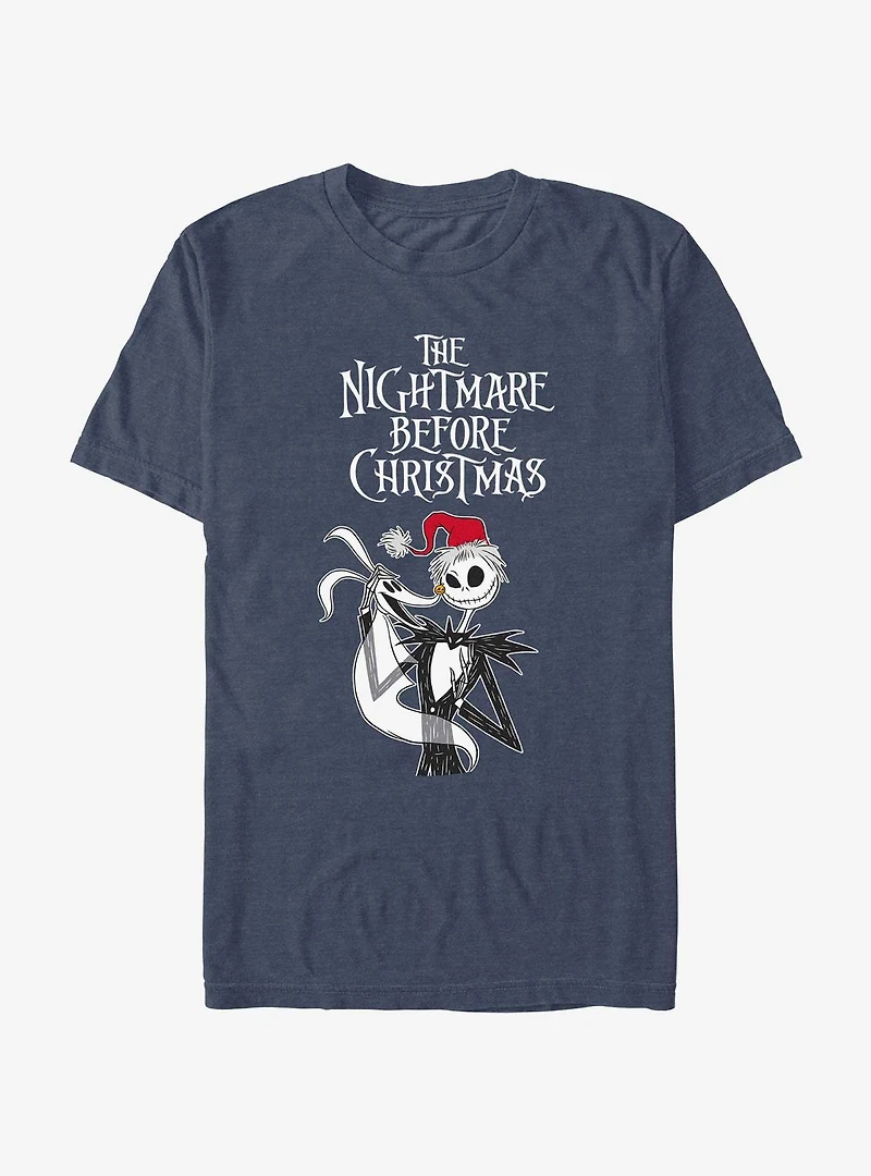 What a brilliant nose Zero has. The better to light Jack's way! This lightweight tee -- inspired by The Nightmare Before Christmas -- features Sandy Claws Jack Skellington with ghost dog Zero.