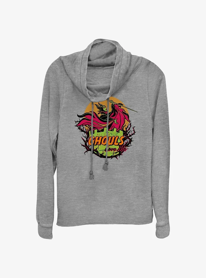 Disney100 Halloween Maleficent All The Ghouls Love Me Cowl Neck Long-Sleeve Top