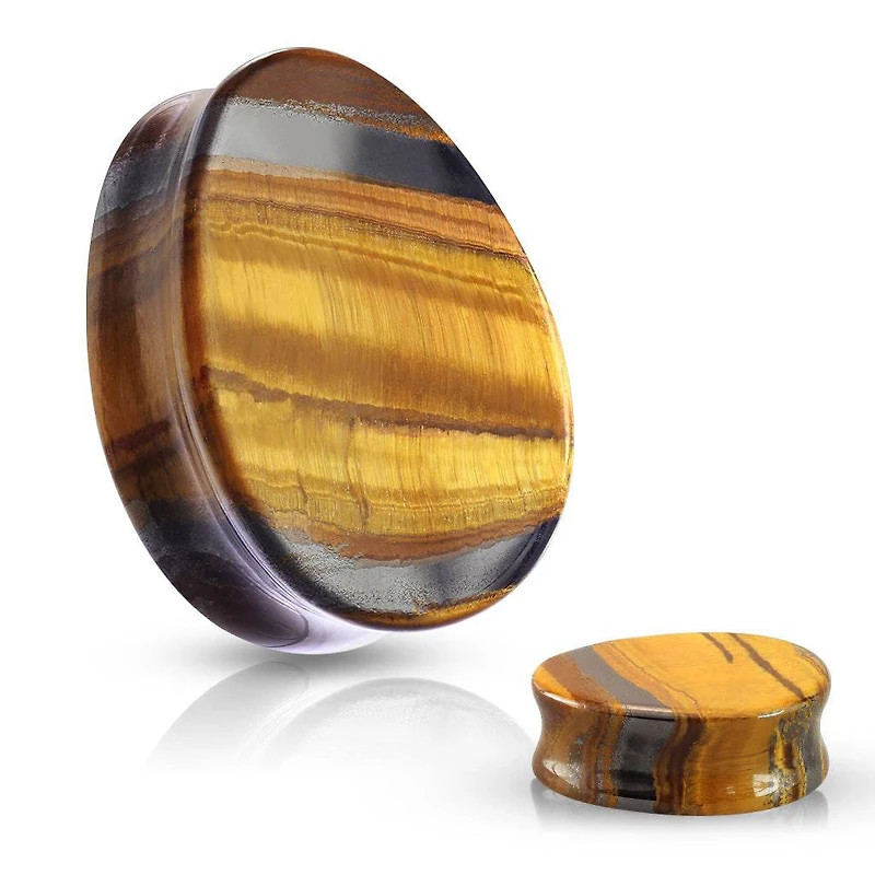 Double Flared Saddle Tear Drop Yellow Tiger's Eye Stone Plugs