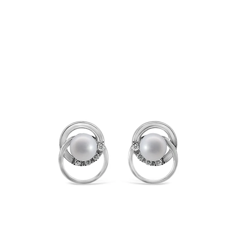 Earrings with 4mm Freshwater Pearl and .04 Carat TW of Diamonds in 10kt White Gold