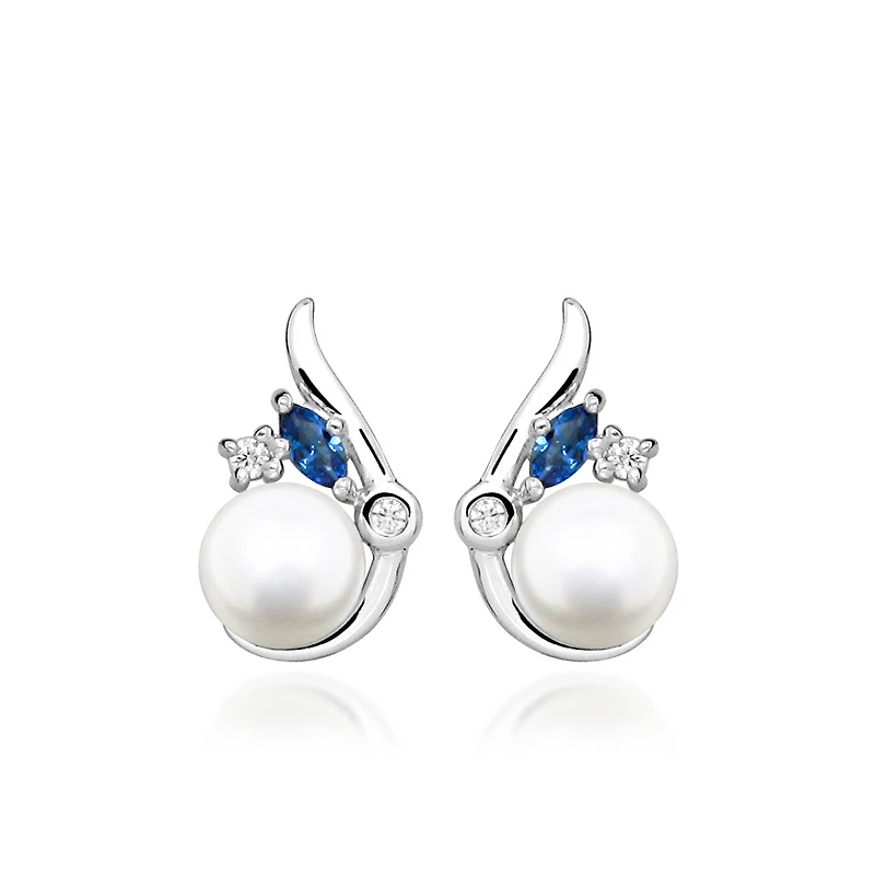 Earrings with White Pearl, Created Blue Sapphire and Cubic Zirconia in Sterling Silver in Brampton, ON